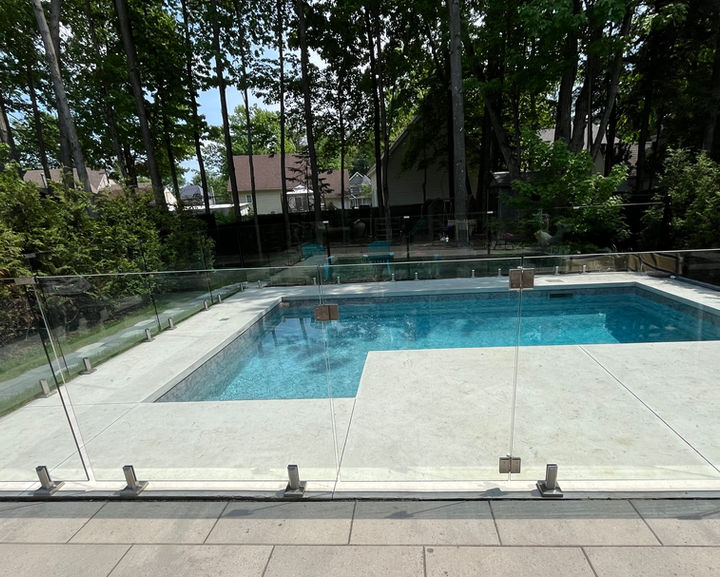 Clôture Verre 12mm sur spigots , mini pattes argent ou noir mat. Qualité marine, anti corrosion, verre trempé 5X plus résistant que le verre régulier.